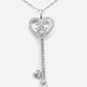 18 Karat White Gold, Round Brilliant | Pear Shape | Baguette Diamond Pendant with Chain