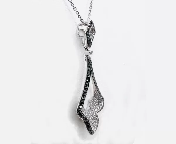 18 Karat White Gold Round Brilliant Diamond and Black Diamond Pendant with Chain